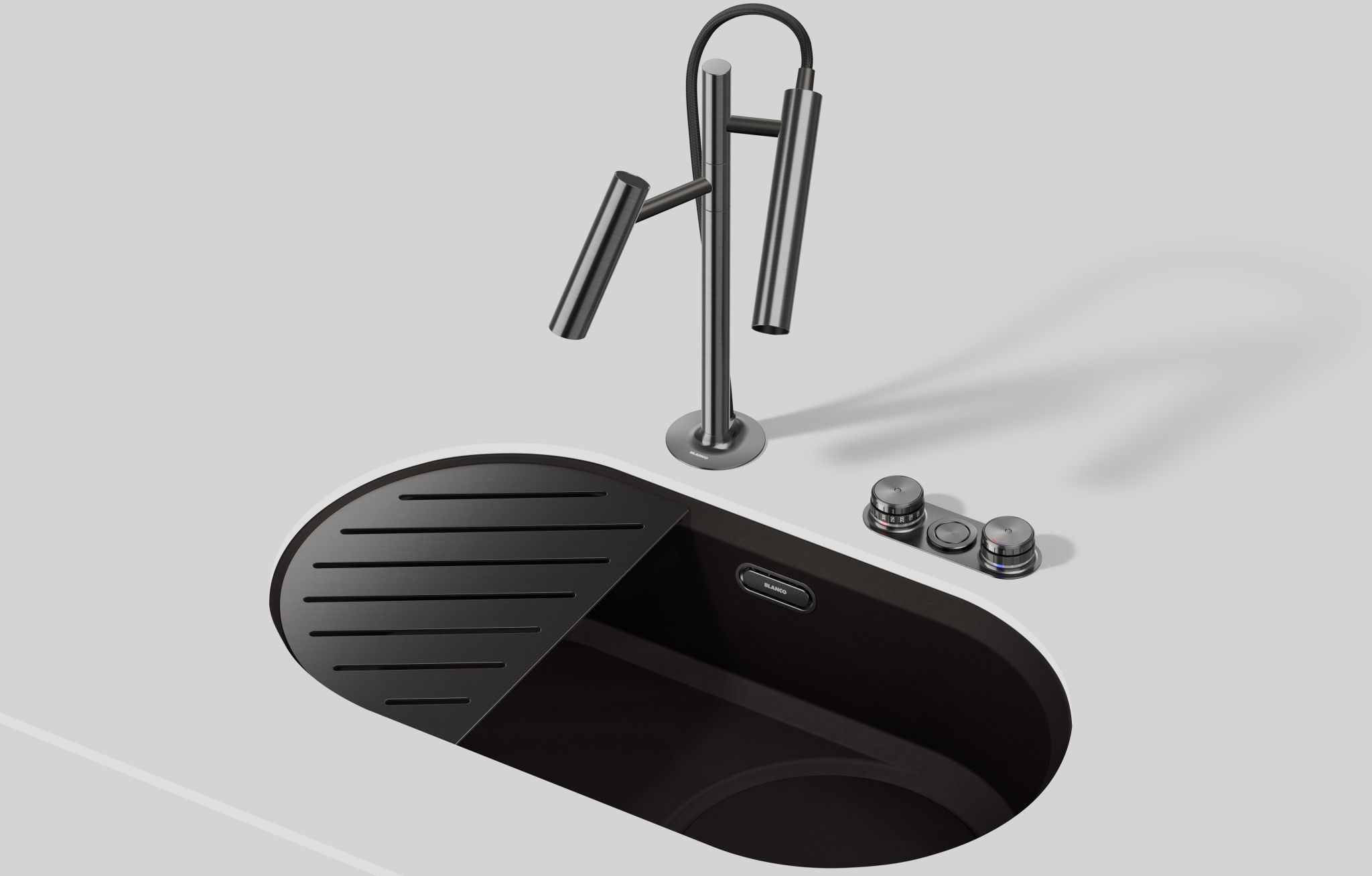 Passend zum Jubiläum präsentiert BLANCO mit Stolz die neue Design Identity – verkörpert durch eine perfekt aufeinander abgestimmte BLANCO UNIT, bestehend aus den Armaturen LUNEOO-S und den Spülen OOVALON.